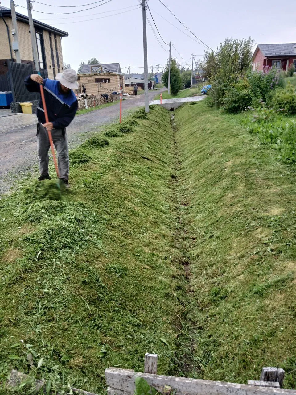 Выполнен покос травы на дренажных канавах (12 441 м²) с ежедневной отметкой графика на карте для жителей.
