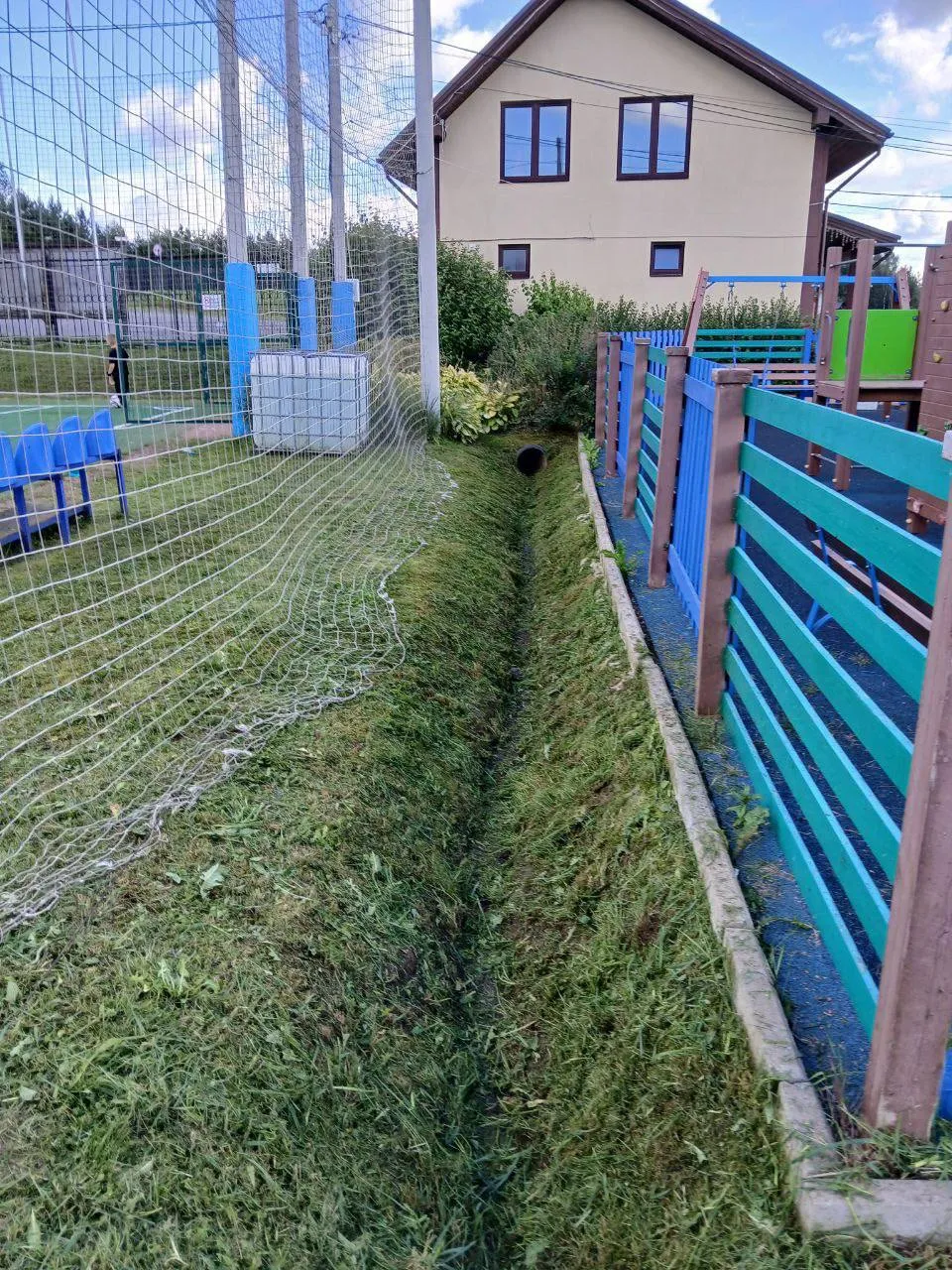 Выполнены покос и уборка травы на хозяйственной зоне, вокруг детской площадки, футбольного и волейбольного поля, въездной группы.