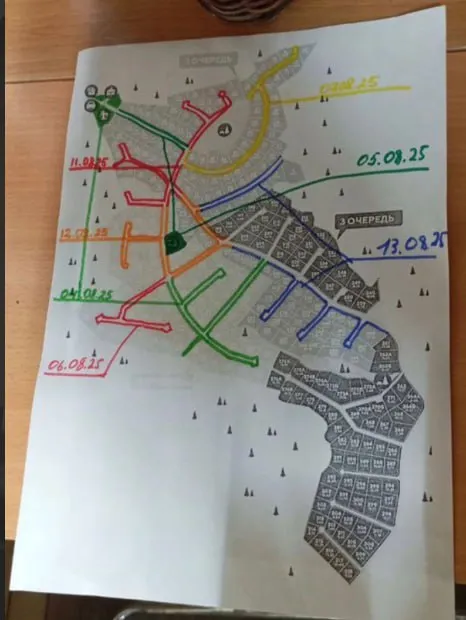 Выполнены покосы въездной группы и территорий 1–3 очереди, с фиксацией дат на карте посёлка.