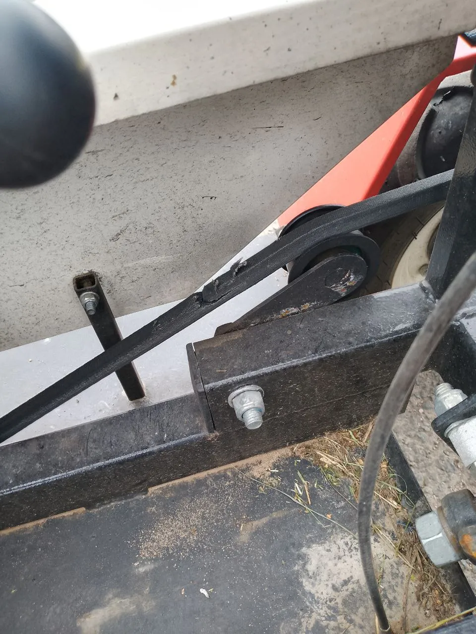 Заменён приводной ремень на минитракторе; проложена труба под электрический кабель на хоззоне.