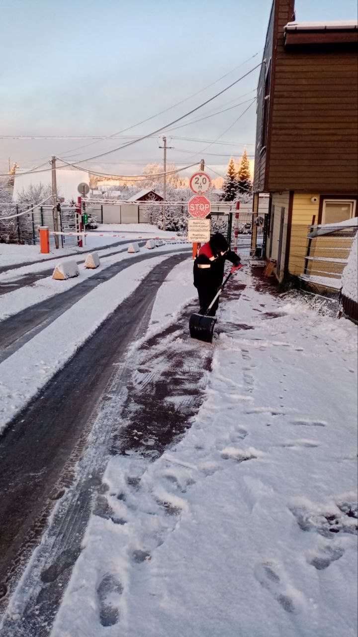 Выполнена чистка снега на основных улицах в посёлке, а также в районе автоматического контрольно-пропускного пункта, грузового контрольно-пропускного пункта, рекреационных зонах. Работы проводились при помощи техники и вручную.