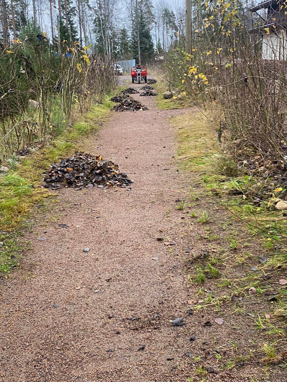 Регулярно, в течение месяца производилась очистка дорожного полотна и территории детской площадки от опавшей листвы и иголок хвойных деревьев.
