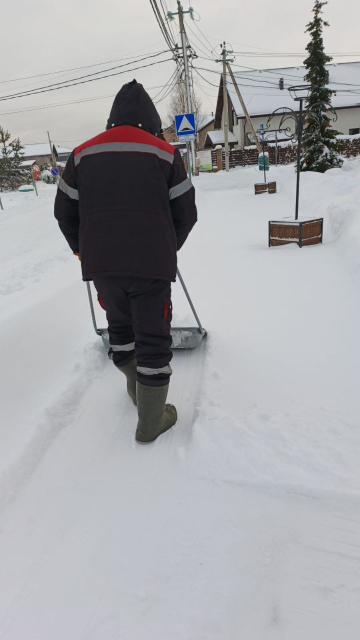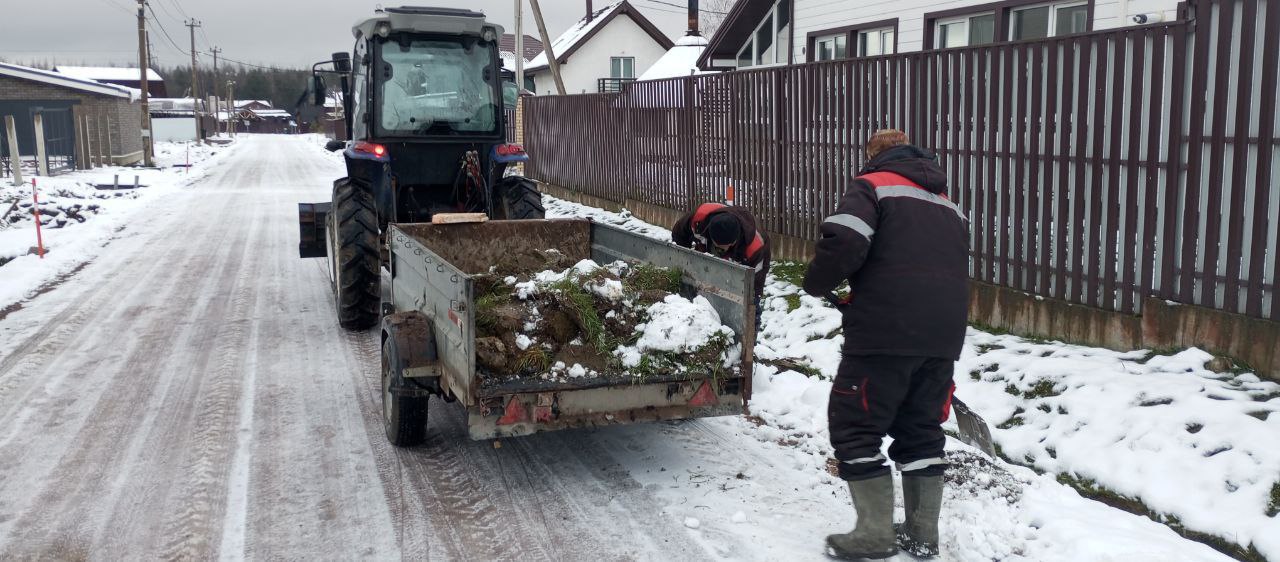 Осуществлялась чистка снега на всех улицах в посёлке при помощи тракторов, вручную очищен снег на детских площадках, у автоматического и грузового контрольно-пропускных пунктов, площадке для выгула собак, прогулочной зоне рекреационной общестоповой территории.