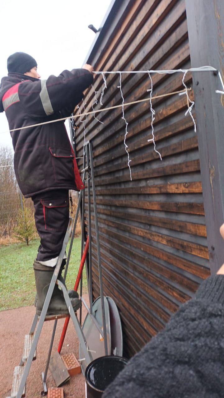 Подготовлен посёлок к новогодним праздникам. На детской площадке установлена и украшена ёлка. Организована закупка новых гирлянд и украшена въездная группа, здание контрольно-пропускного пункта.