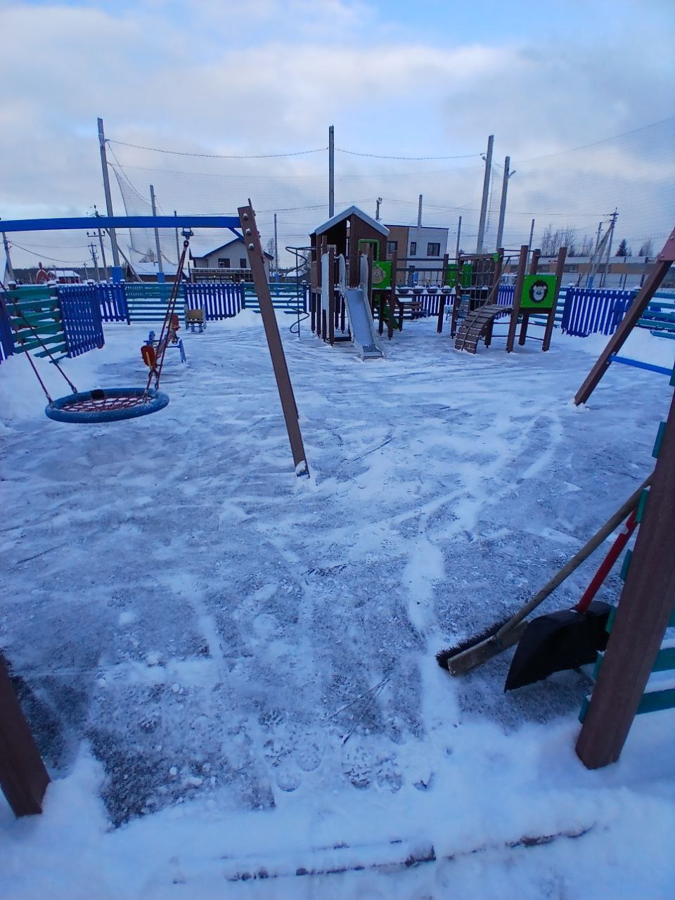 Выполнена очистка от снега территорию детской площадки, вокруг здания администрации, въездной группы.