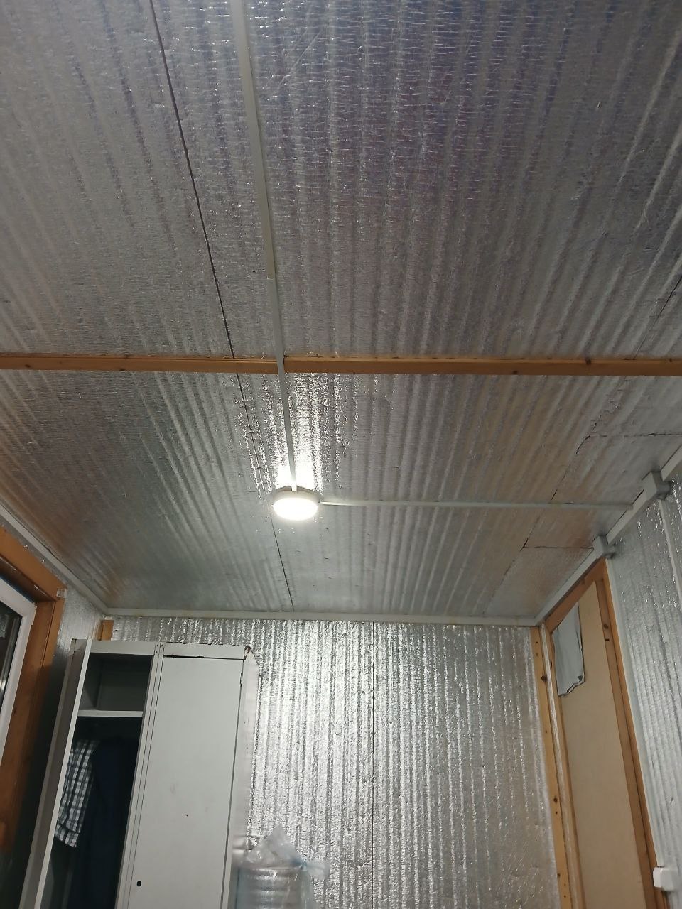 Начата отделка стен бытовки рабочих теплоизоляцией.