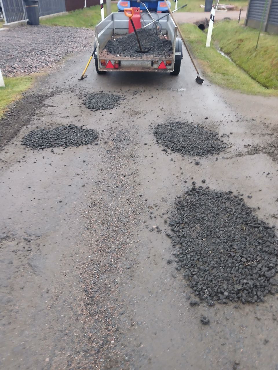 Произведен мелкий ямочный ремонт на выбоинах дорожного покрытия. Израсходовано 0,8 м³ асфальтной крошки.