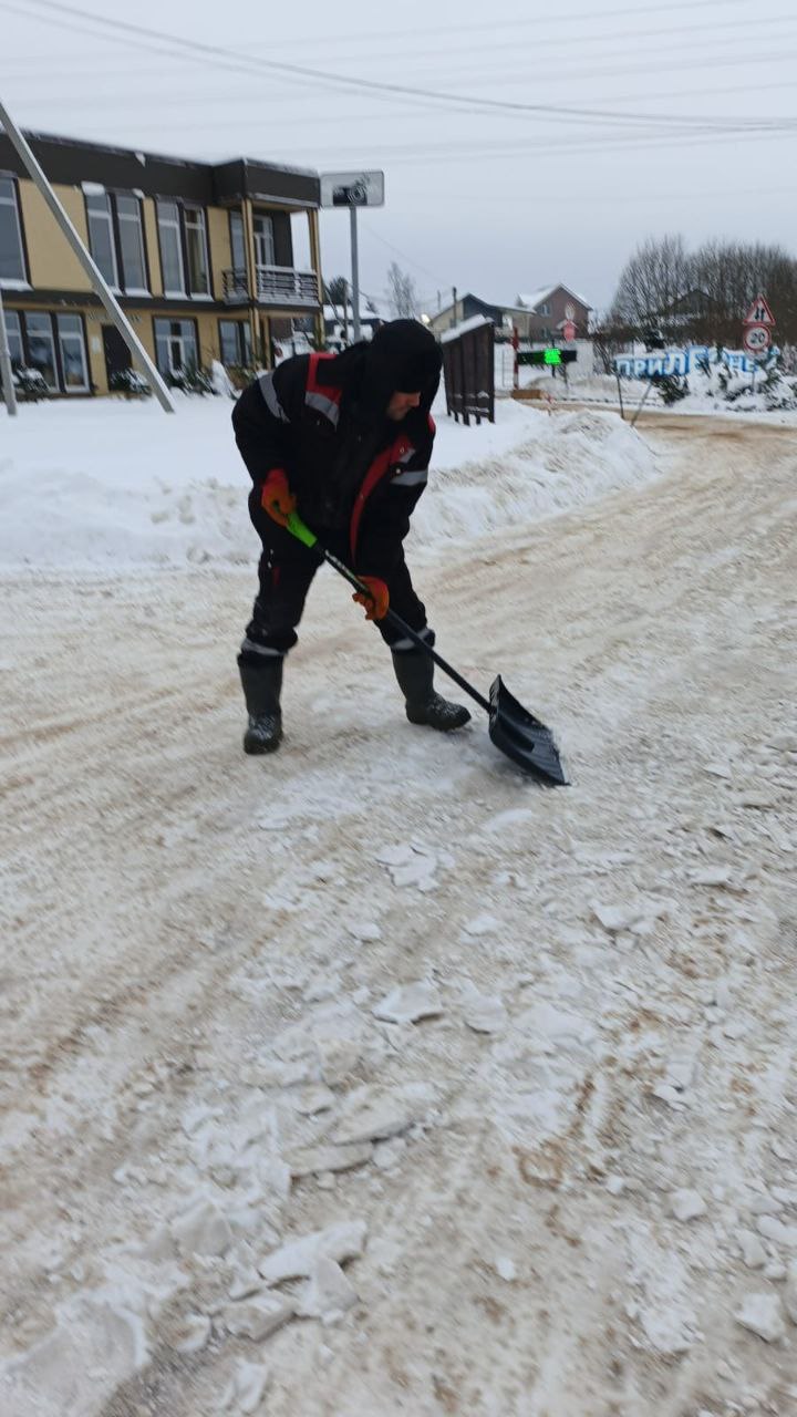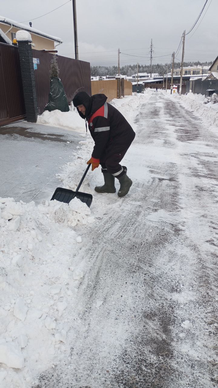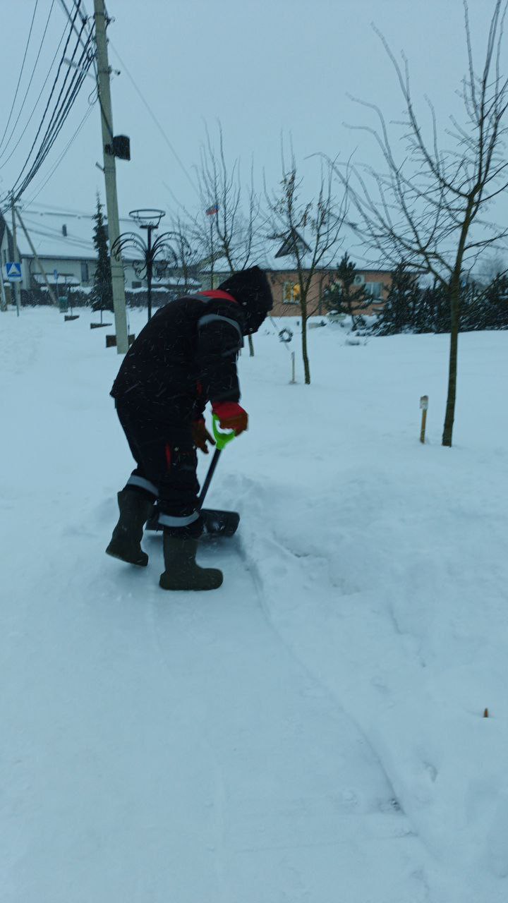 Выполнена ручная уборка снега на детских площадках, въездных группах, площадке для выгула собак, зоне «РОСТ», подъездах к участкам, подходах к урнам и электрическим опорам.