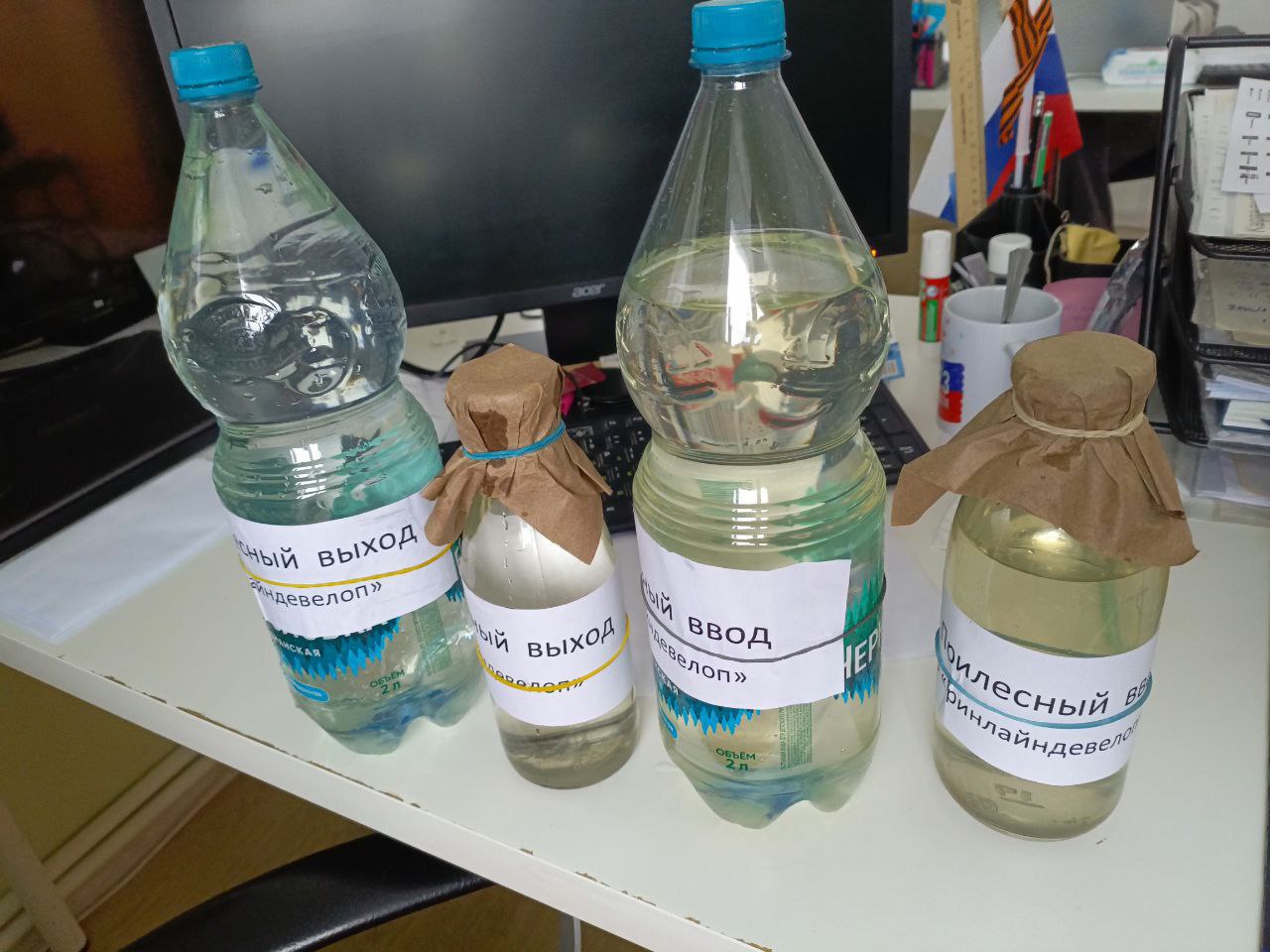 Вода отправлена на исследование в санитарно-эпидемиологический центр (образцы взяты в стерильной таре), результаты анализов приобщены к отчёту.