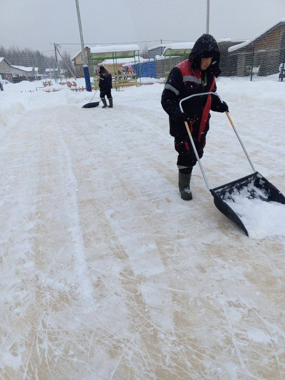 Ежедневная уборка катка от снега и заливка льда для поддержания ровности поверхности.