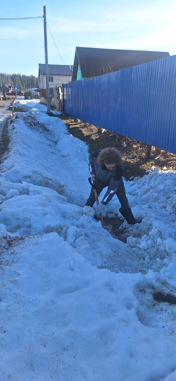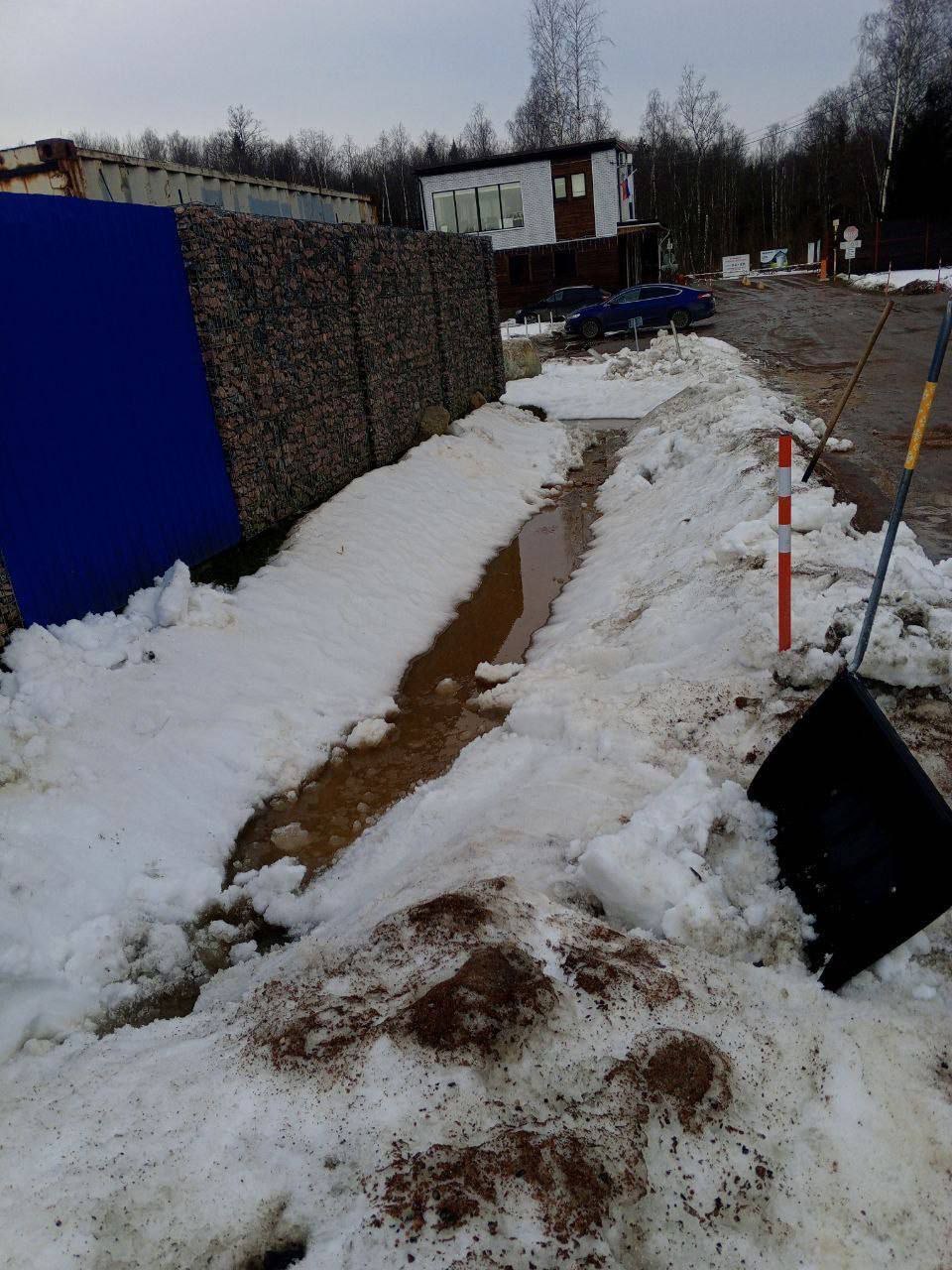 Откопана дренажная канава от снега в коттеджном посёлке Кокосы на участках 308–244 (устранён затор).