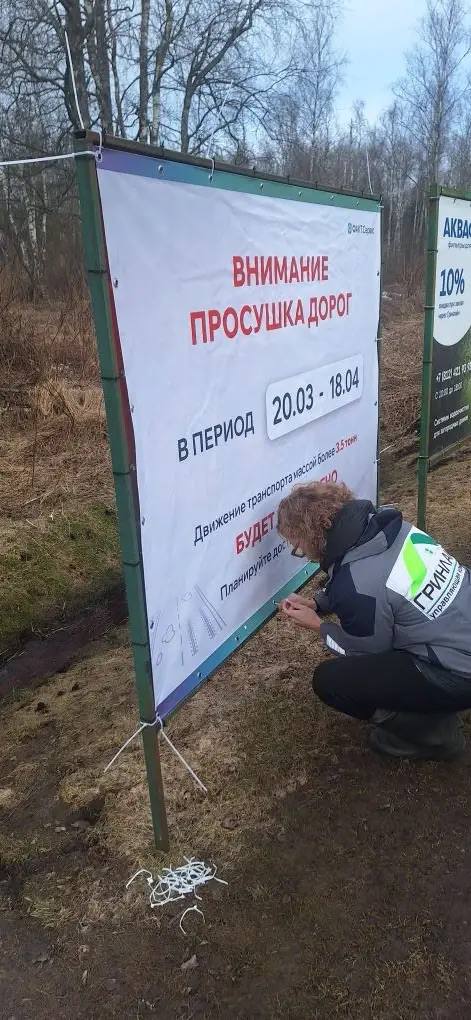 Установлены баннеры о просушке дорог — 3 штуки.