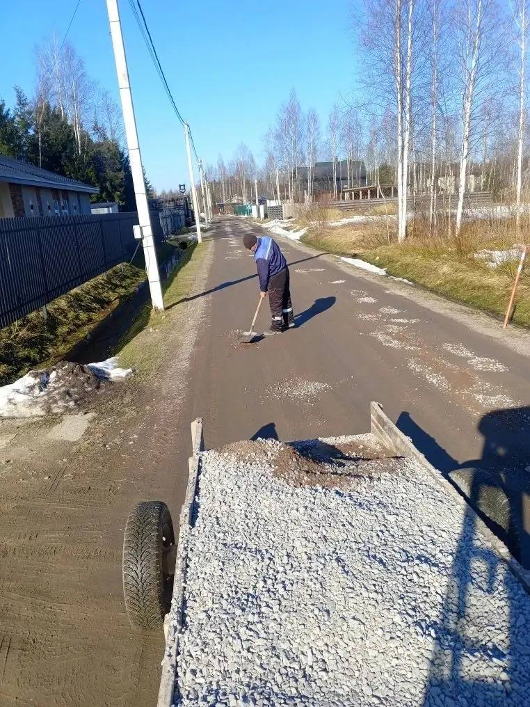Начат ремонт проездов в коттеджном посёлке Кокосы протяжённостью 5 900 метров: затрачено 31,3 м³ сыпучих материалов.