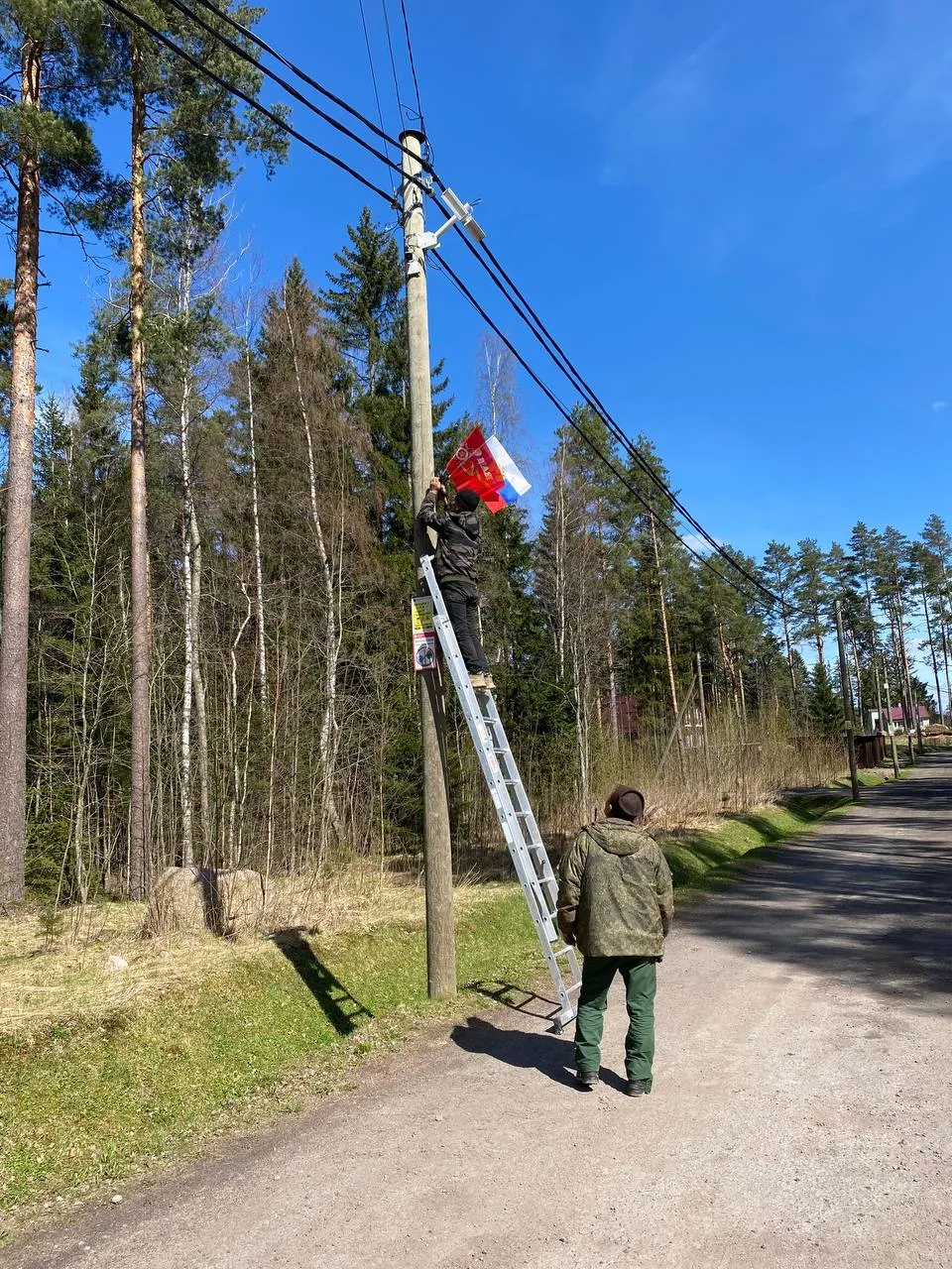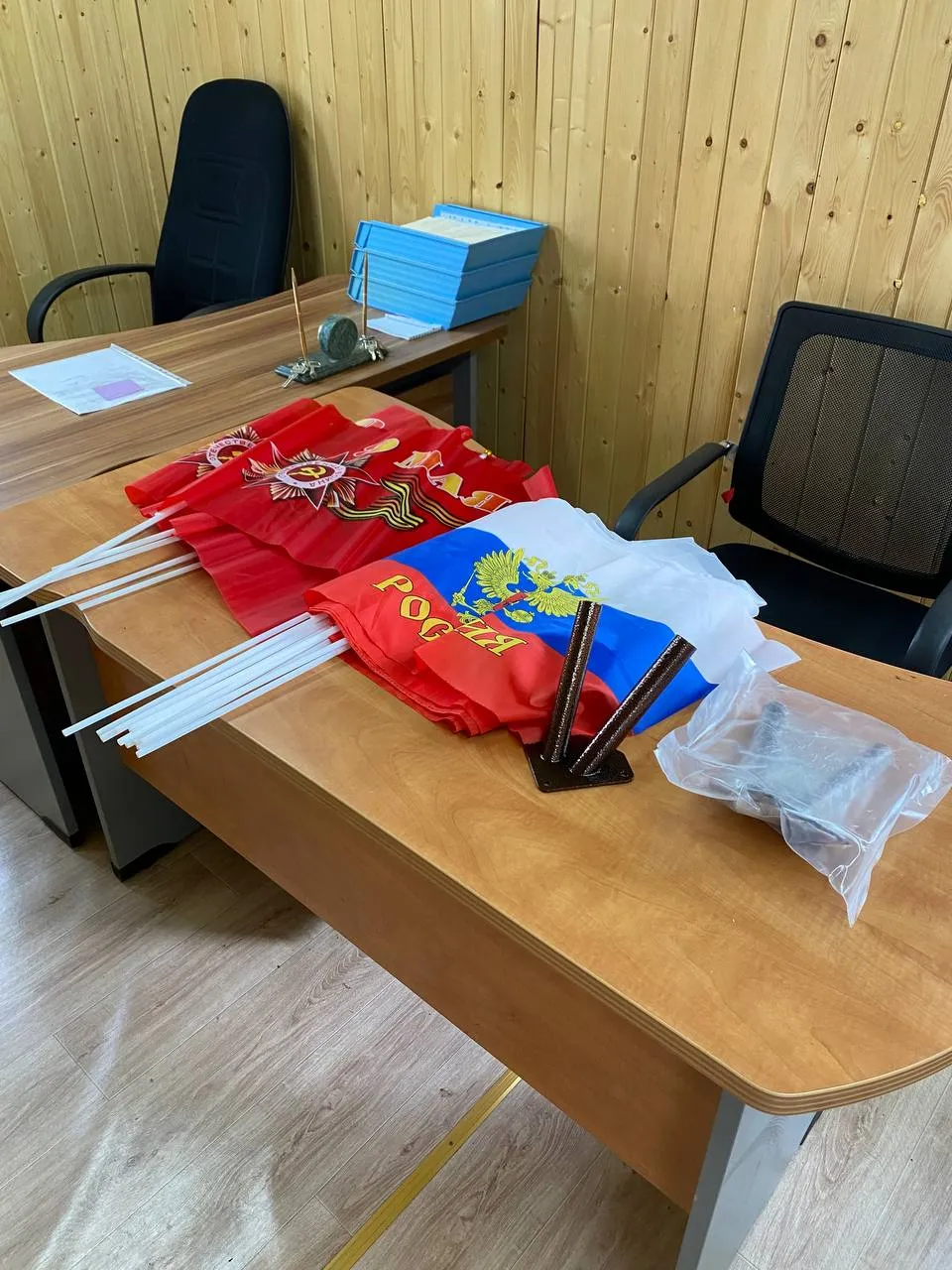 Установлены флаги России и Победы на Парадном проезде и на КПП.