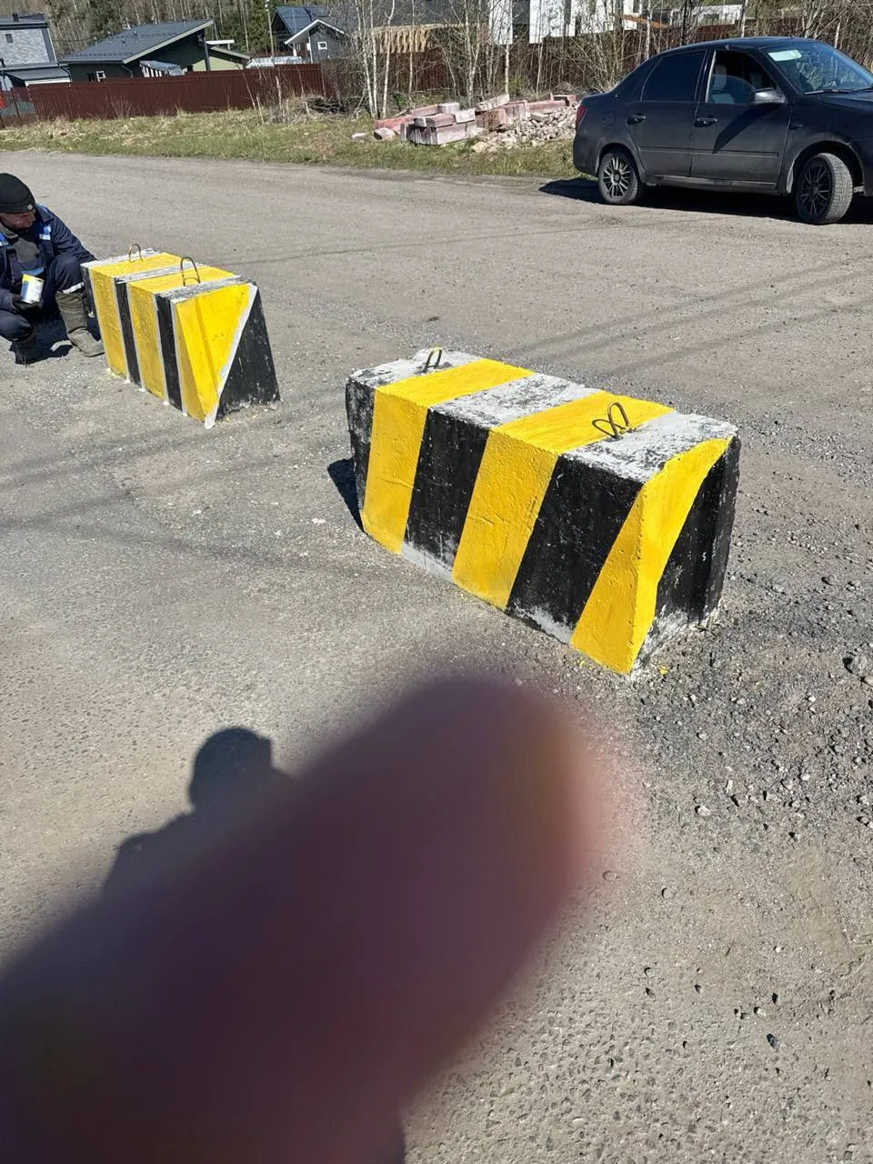 Продолжено обновление лакокрасочного покрытия ограждающих конструкций перед въездом в посёлок.