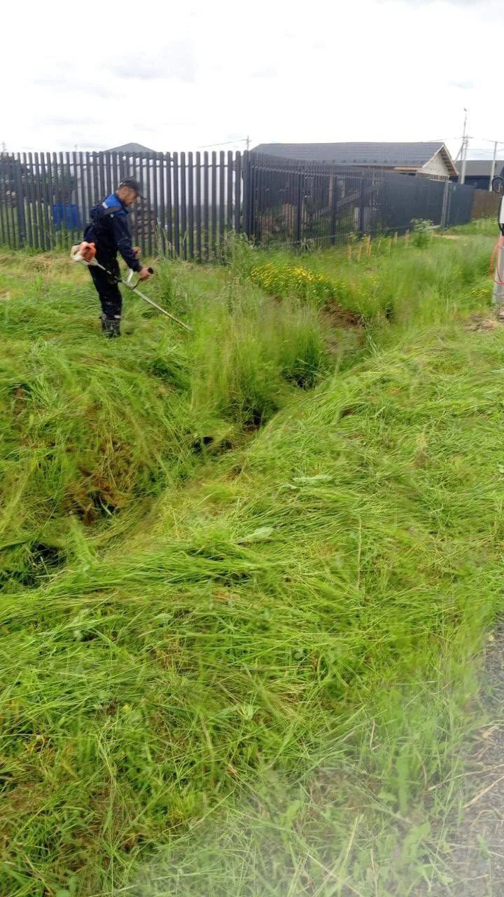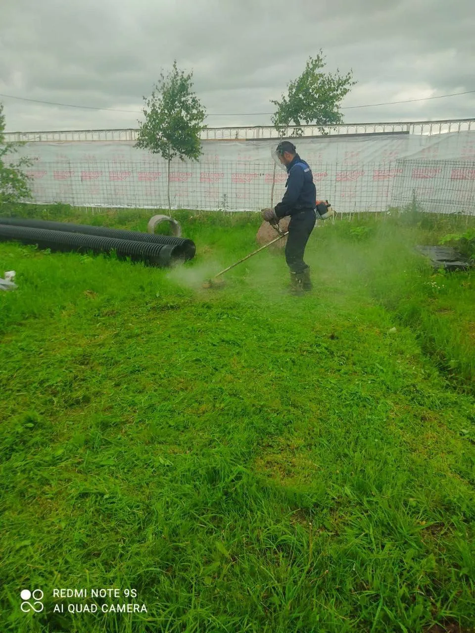 Покосили траву на дренажных канавах, хозяйственной зоне, детской площадке, пожарной въездной зоне.