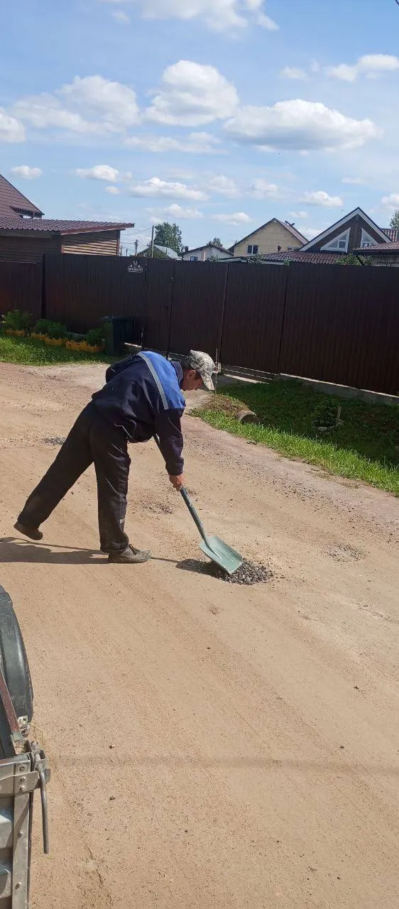 Провели восстановление дорожного полотна и ямочный ремонт основных улиц, израсходовано щебня 8м³, отсева 13м³.