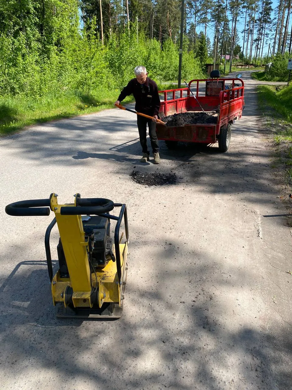 Выполнили ямочный ремонт участка дороги асфальтовой крошкой (Парадный проезд, 50м, 1,5м³).