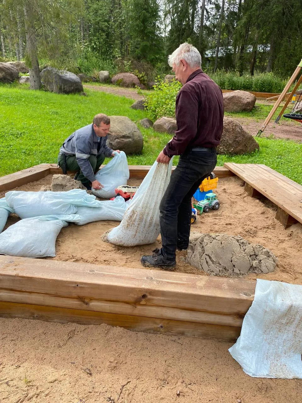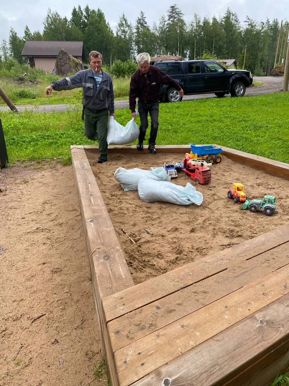 Завезли на детскую площадку сертифицированный песок — 750 кг.