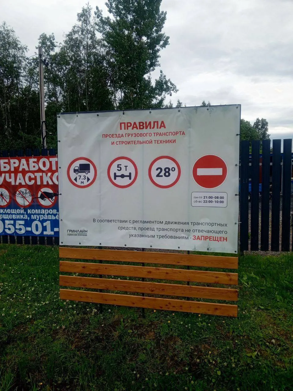 Установили рамку для баннера на въезде в посёлок; смонтировали баннер о правилах проезда грузовой техники.