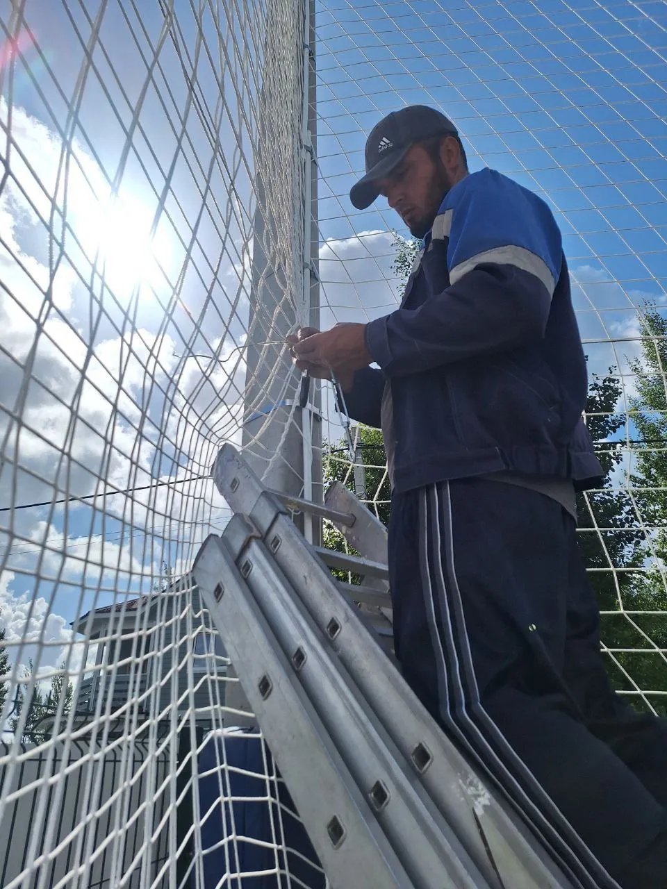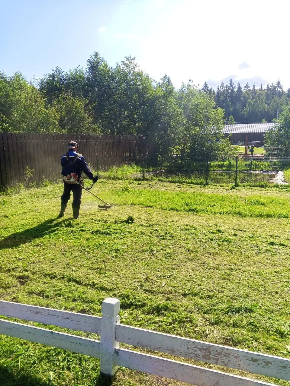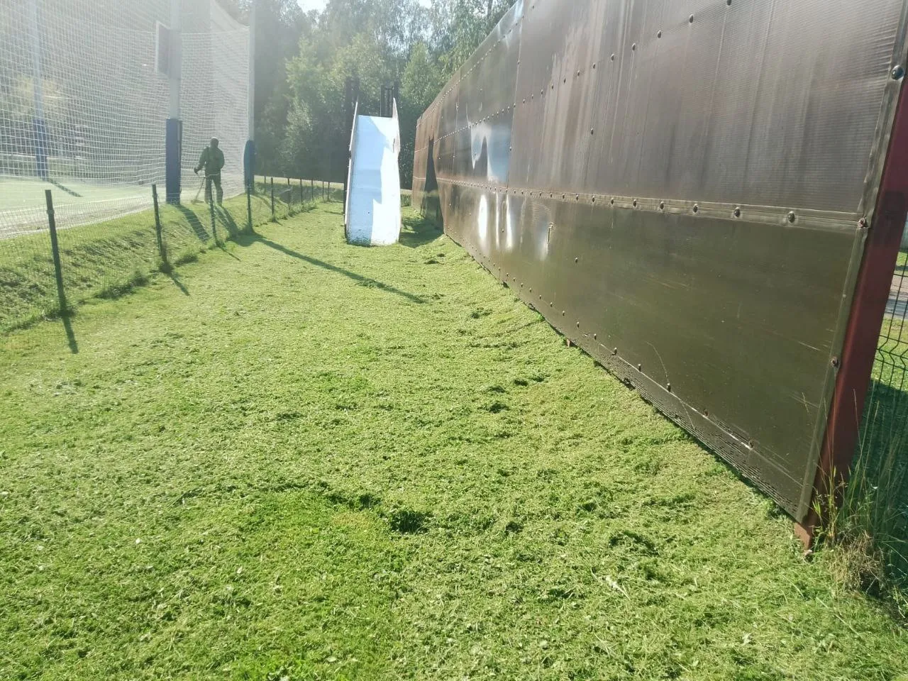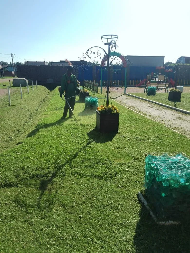 Выполнена чистка травы на детской площадке и волейбольном поле.