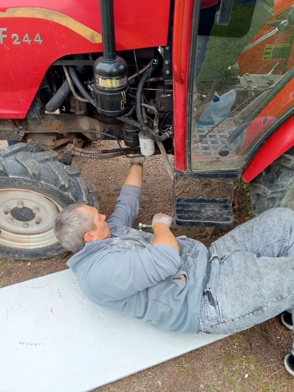 Выполнен ремонт трактора ДФ‑244 (№9101): ручной газ, диагностика электрики, вклейка ветрового окна из поликарбоната, замена масла и фильтра; проведён мелкий ремонт триммеров и передано 2 триммера в сервис.