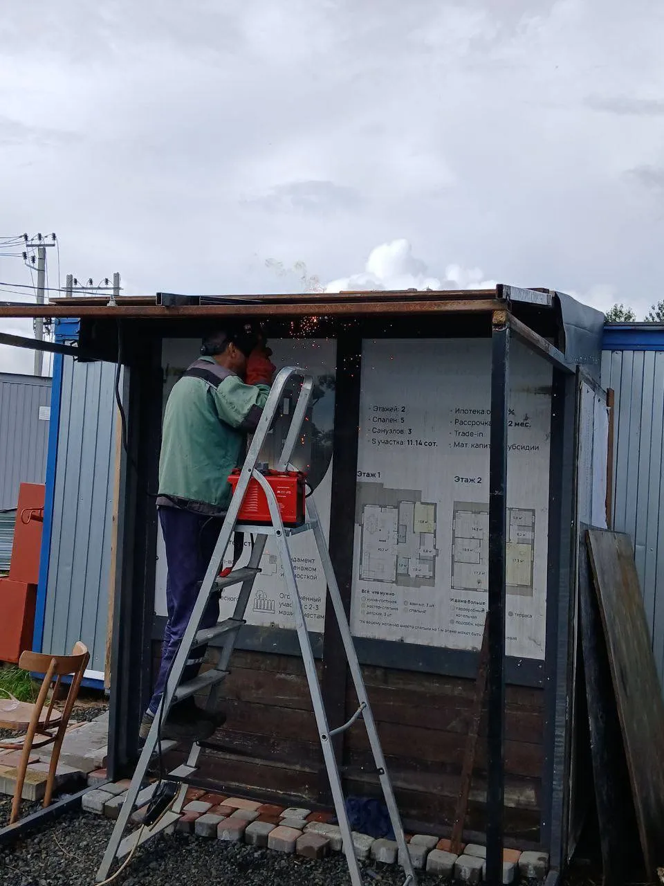 Построен навес на хозяйственной зоне для хранения инструмента и материалов.