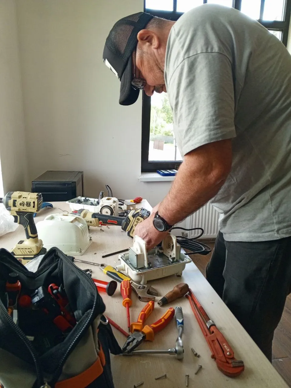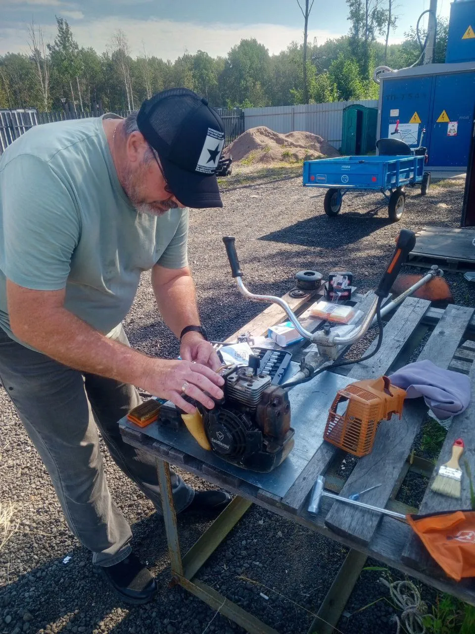Заменён приводной ремень на минитракторе; проложена труба под электрический кабель на хоззоне.