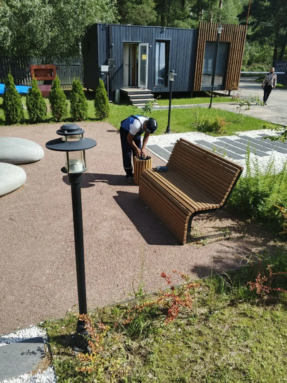 Выполнены уборка мусора на проездах, в канавках, на детской площадке и общих территориях; выполнен клининг детской площадки.