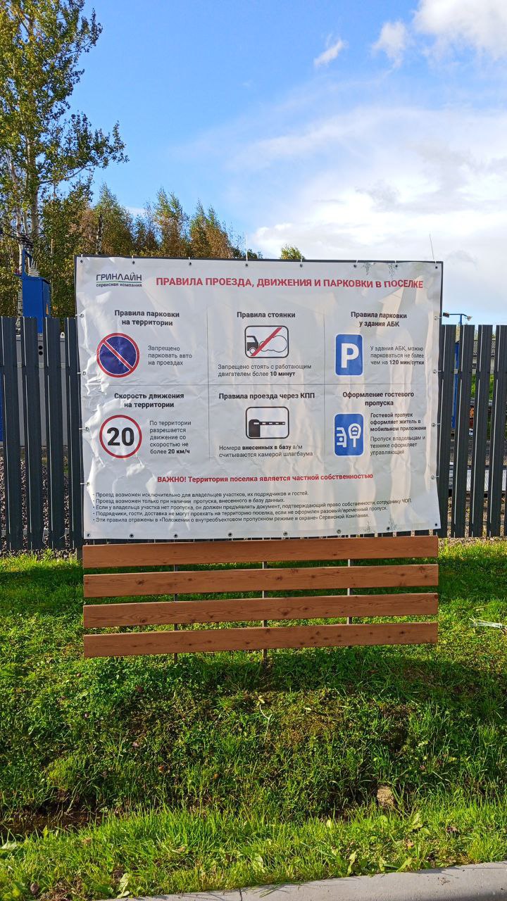 Изготовлена рамка и установлен новый баннер правил проезда по посёлку.