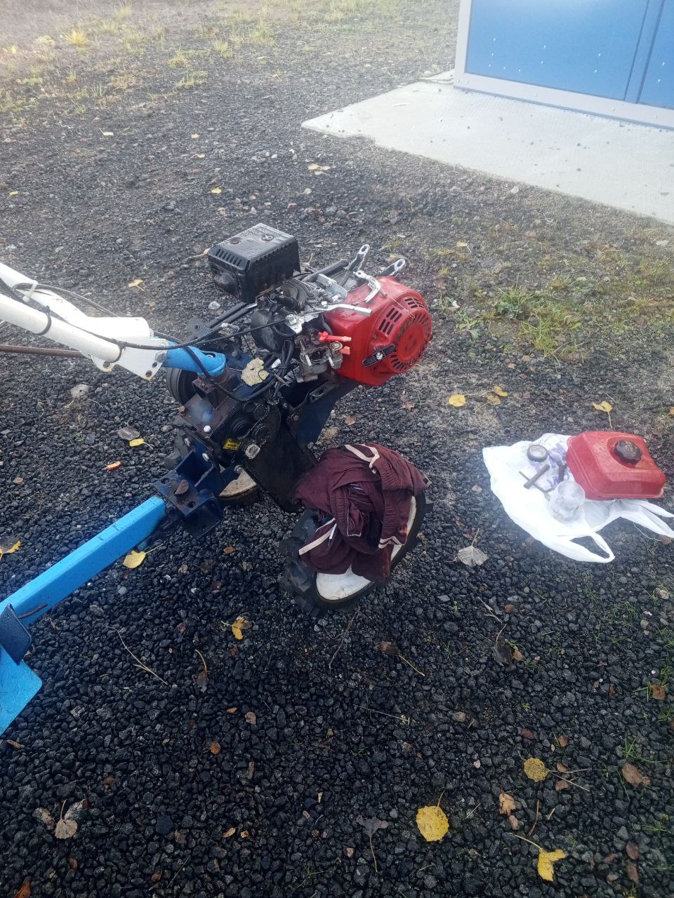 Проведён ремонт мотоблока: заменён бензобак и тросик сцепления.