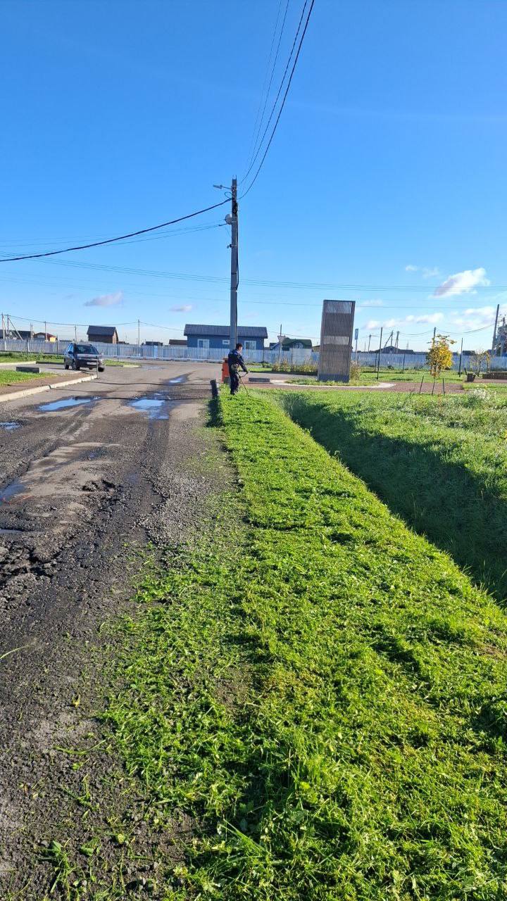 Выкошена территория въездной группы и детской площадки.