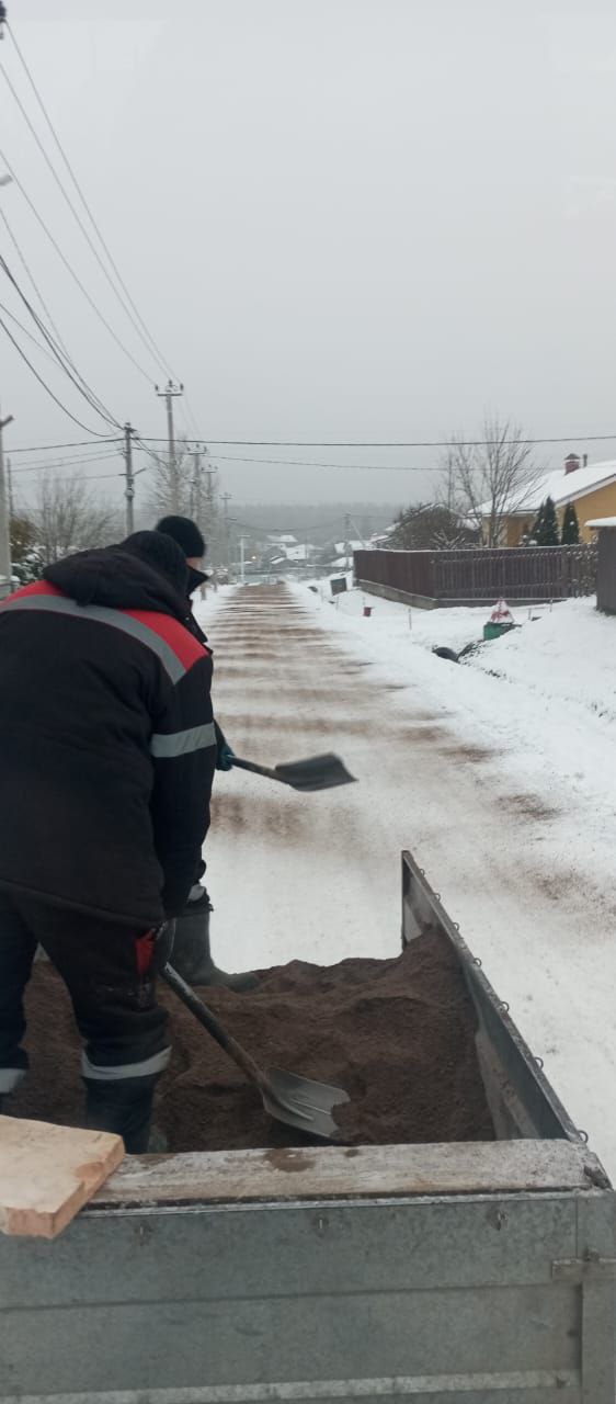 Проведена антигололёдная обработка основных дорог в посёлке согласно карте.