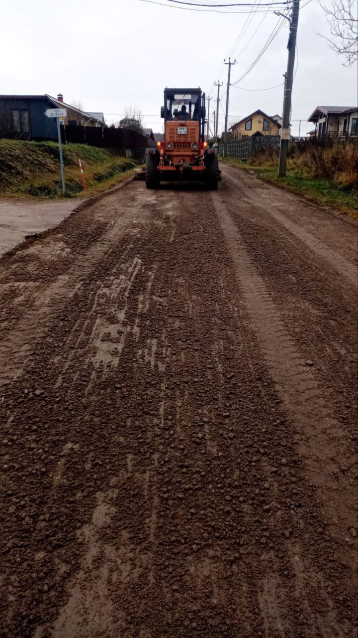 Проведено дополнительное грейдирование основных дорог в посёлке при помощи трактора. Убран бруствер после грейдирования вручную.