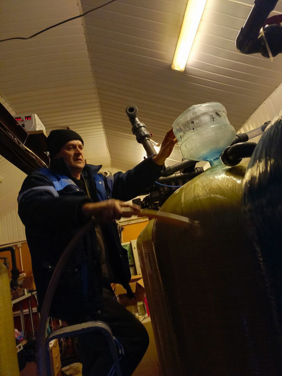 Осуществлен плановый ежедневный контроль работы станции водоочистки и оборудования резервуара чистой воды с занесением в журнал. Выполнена заправка реактивами на станции водоочистки. Произведены ежедневные контрольные заборы воды до очистки и после, промывка колонн на станции водоочистке. Промыт магистральный водопровод через систему гидрантов. Завершено обслуживание и подготовка к модернизации 3 и 4 колонны. Приступлено к модернизации системы очистки воды.
