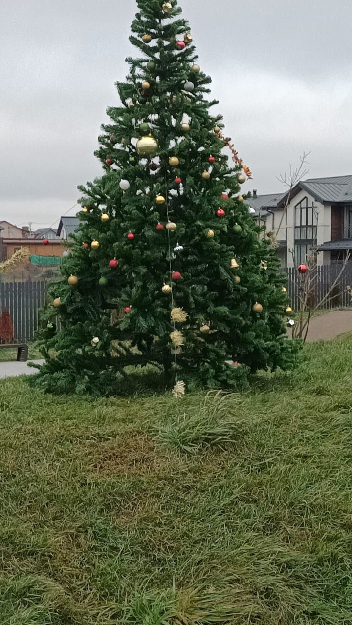 Подготовлен посёлок к новогодним праздникам. На детской площадке установлена и украшена ёлка. Организована закупка новых гирлянд и украшена въездная группа, здание контрольно-пропускного пункта.