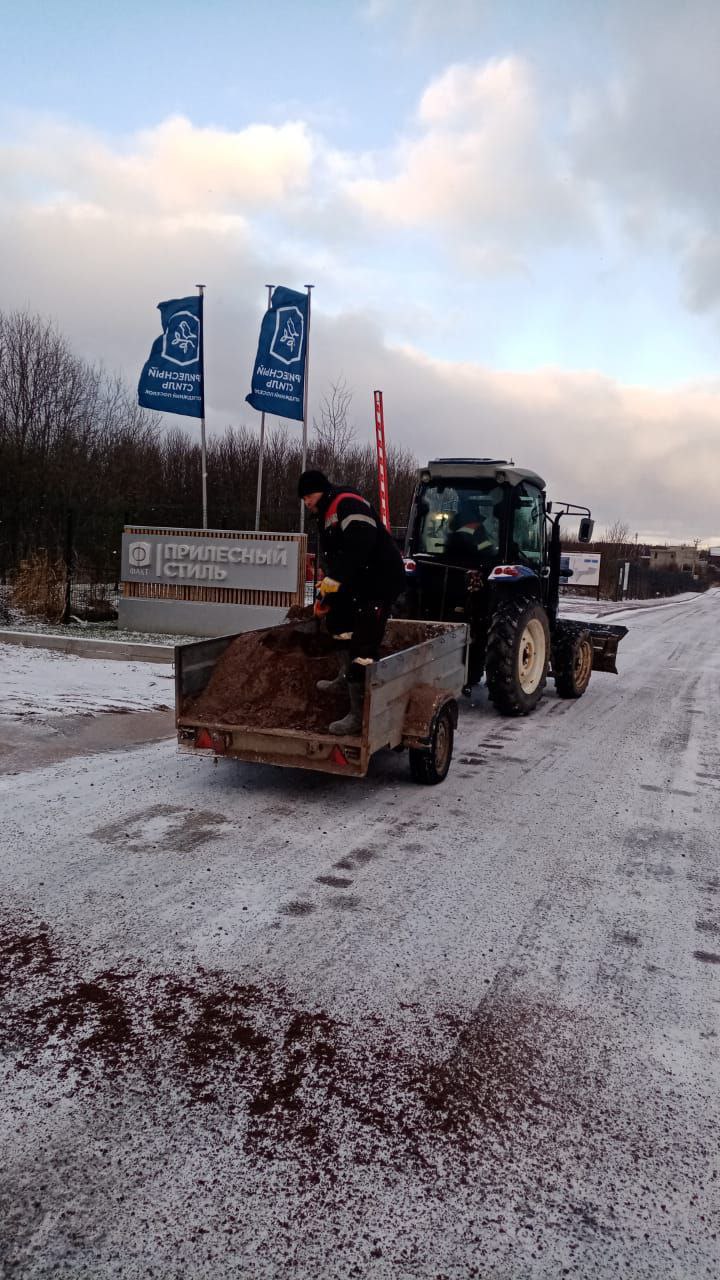 Осуществлена антигололёдная обработка дорог. Израсходовано 7 м³ отсева.