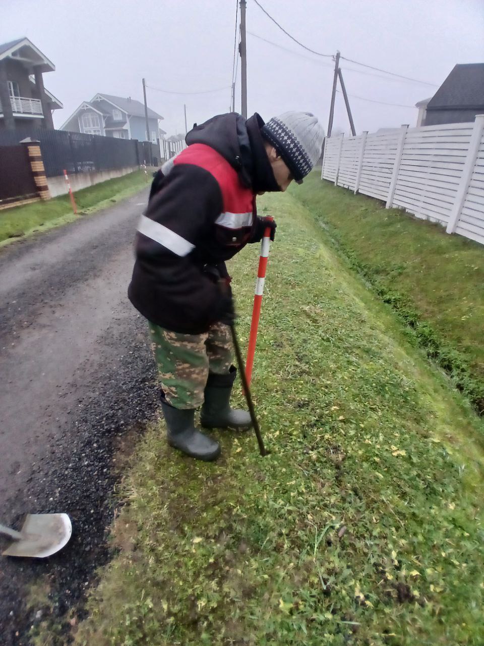 Выполнена уборка территории - сбор мусора и опавшей листвы на внутри поселковых проездах и дренажных канав, детской площадки, общей территории посёлка, у контрольно-пропускного пункта. Собрано 0,6 м³.