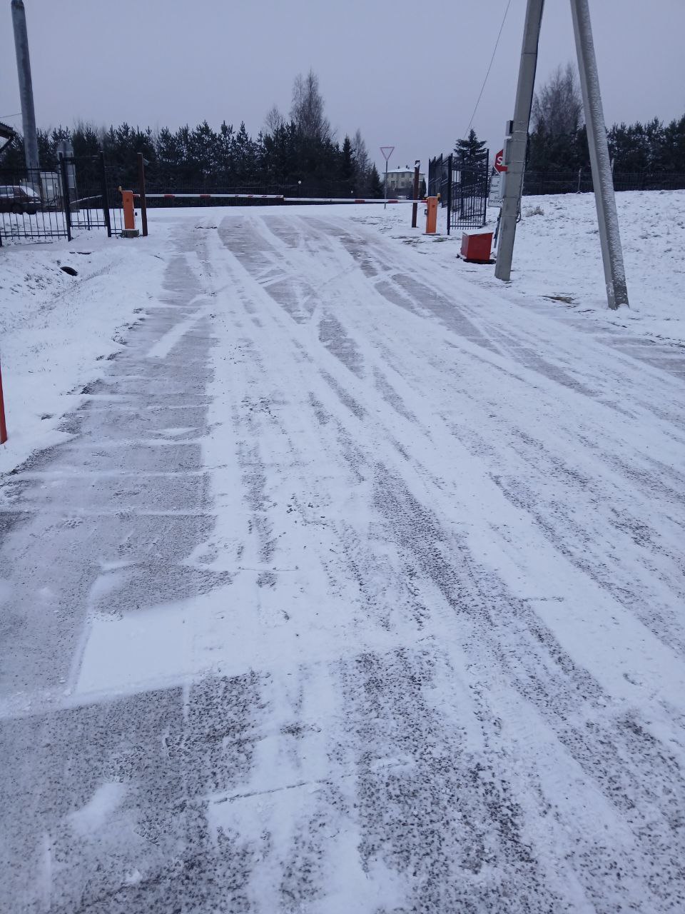 Произведена подсыпка антигололёдной смесью на уклонах и скользких местах, а также на въездной группе.