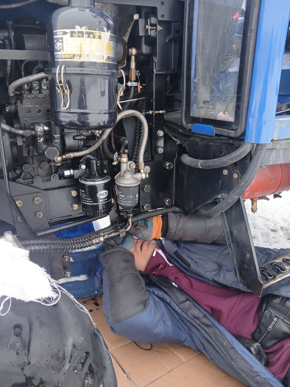 Произведён ремонт трактора (заменено моторное масло, протянуты болты поддона, отремонтированы замок капота и кожух генератора).