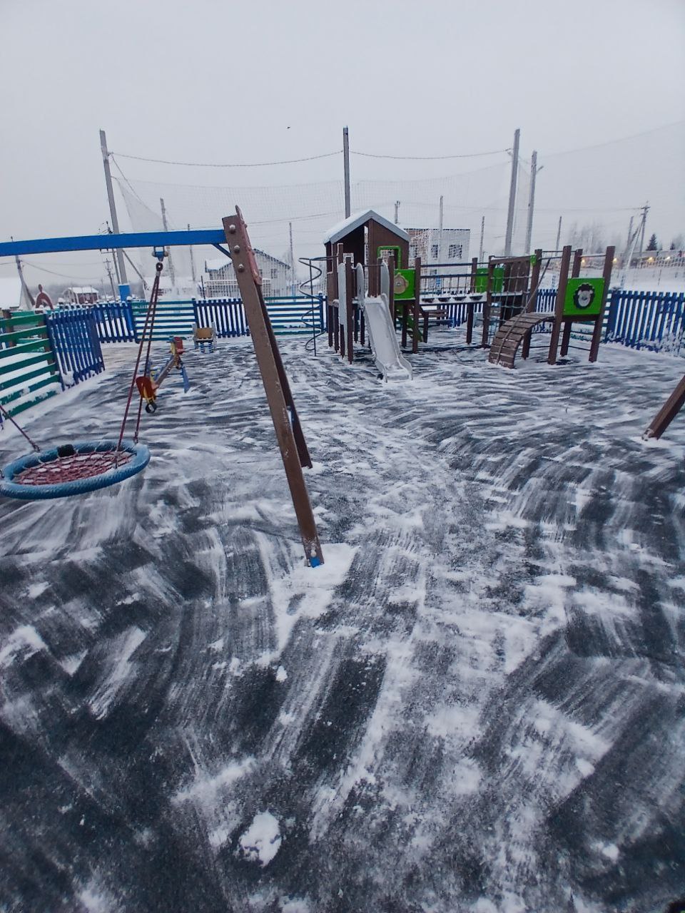 Очищена от снега территория детской площадки, парковки и территория вокруг здания администрации.