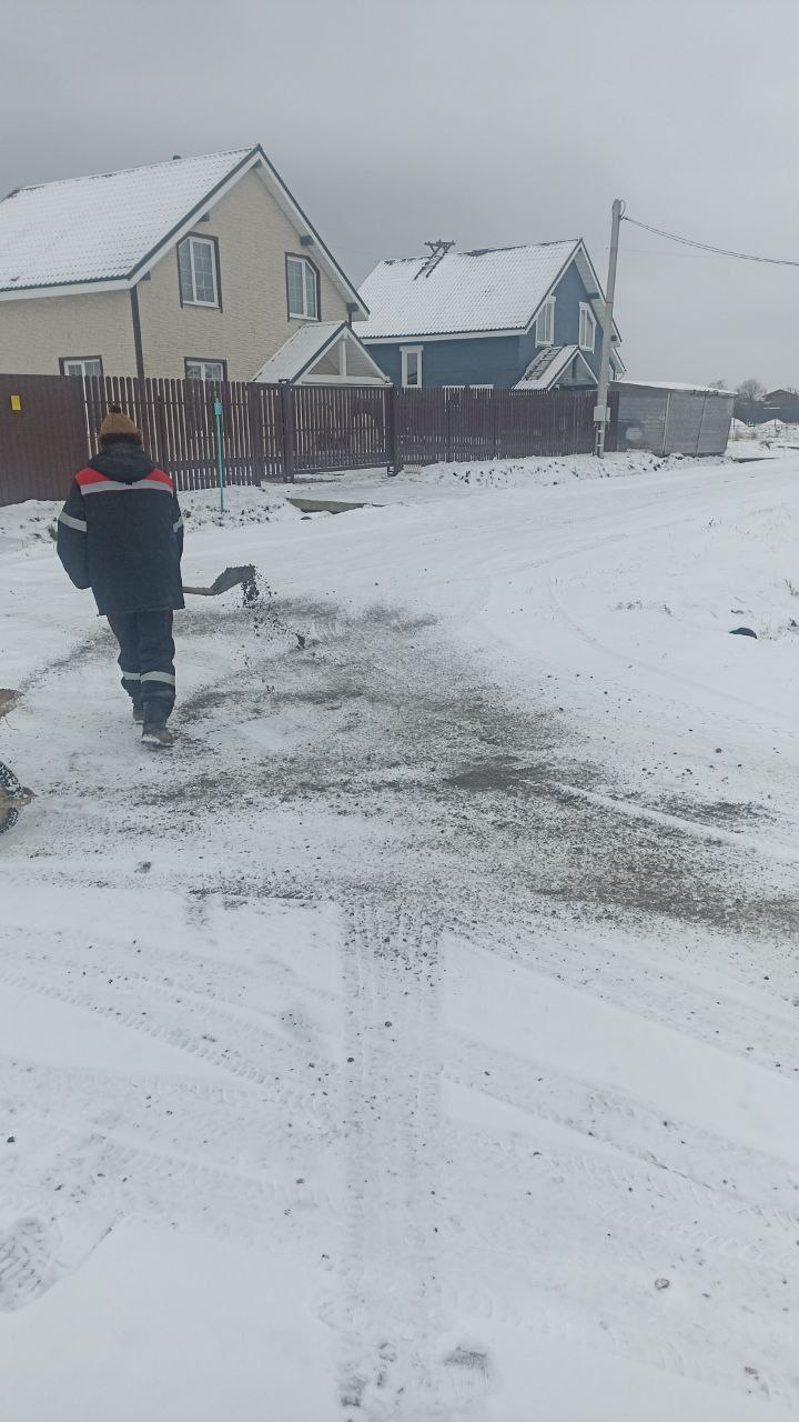 Проезды и перекрёстки обработаны отсевом и солью.