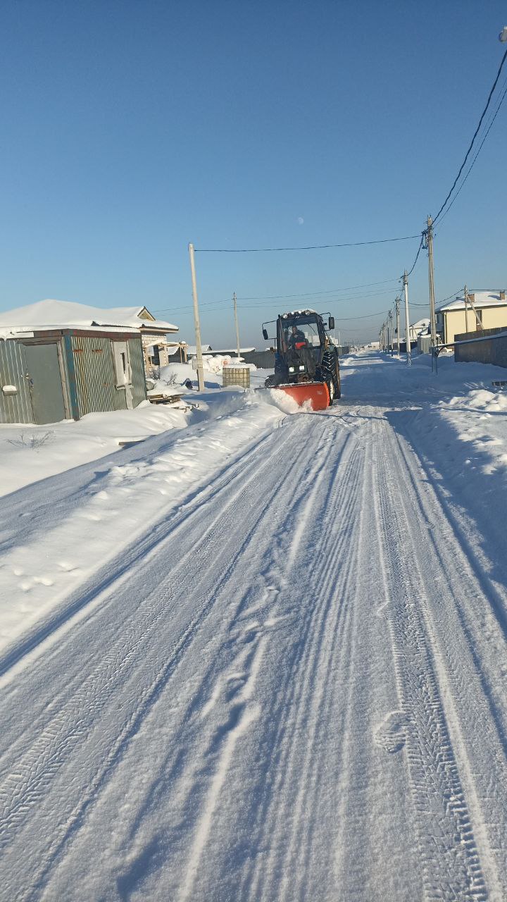 Проведена механизированная очистка посёлка трактором от снега.