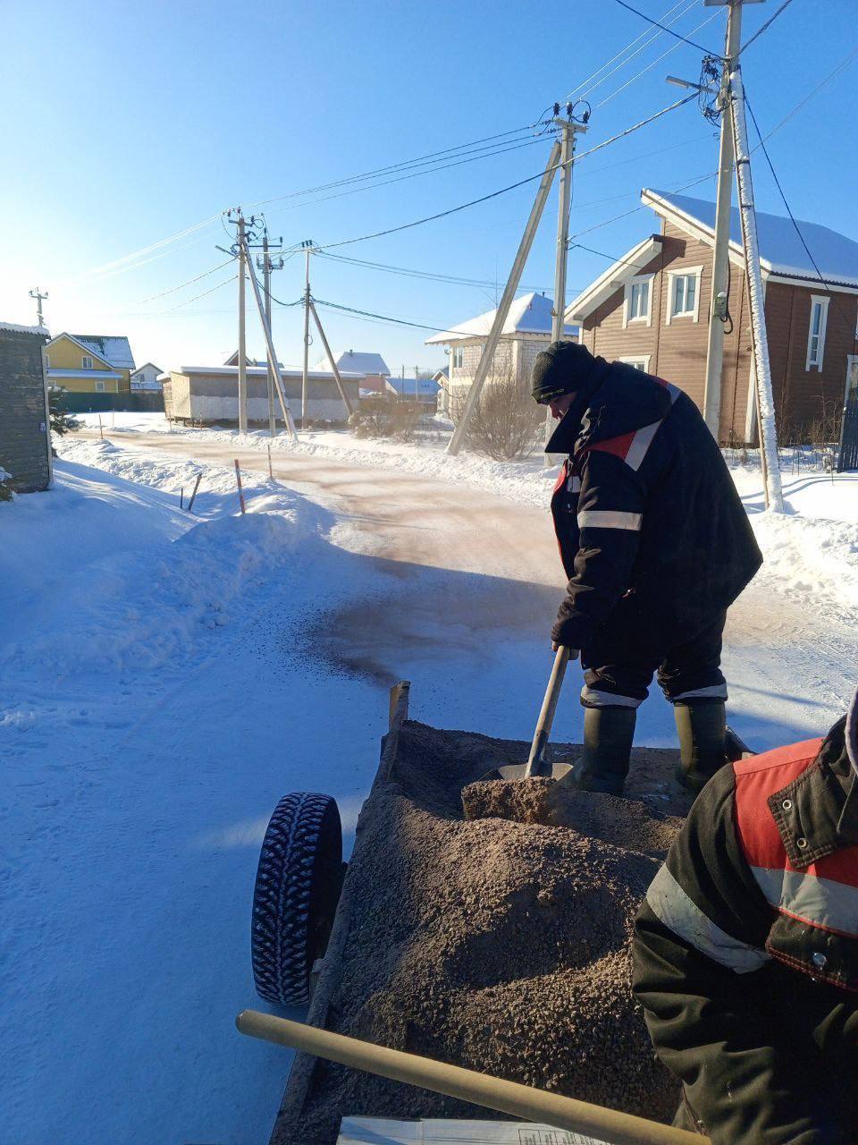 Выполнена отсыпка противогололёдным средством (отсев) перекрёстков и опасных участков в посёлке Коркинский Ручей — 0,5 м³.