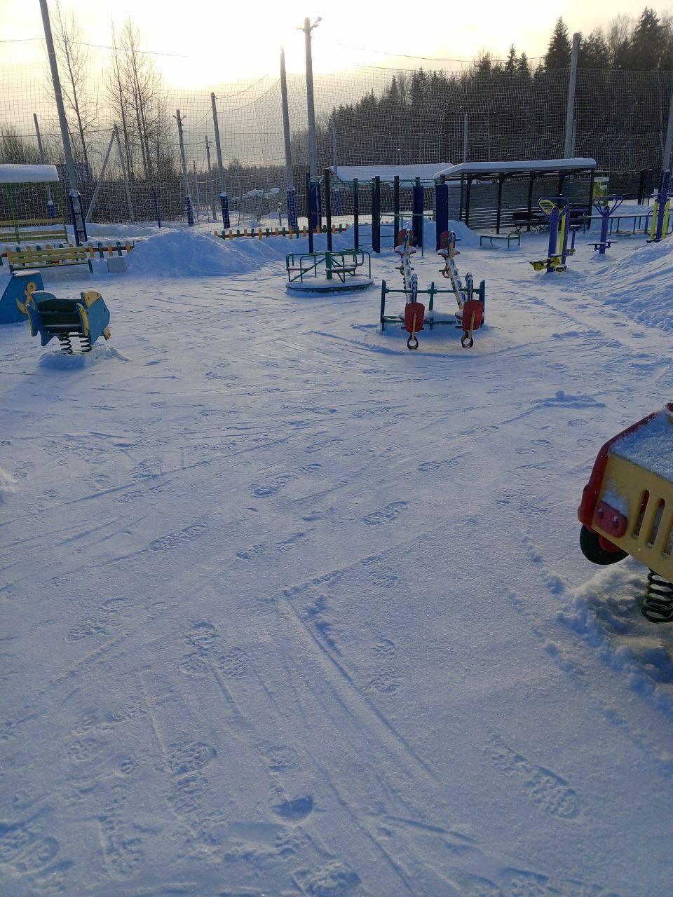 Очищены от снега 2 детские площадки — 5 раз; ступеньки на большой горке — 4 раза; терраса 2-го этажа здания администрации — 2 раза; пергоны на детской площадке; территория хозяйственной зоны.