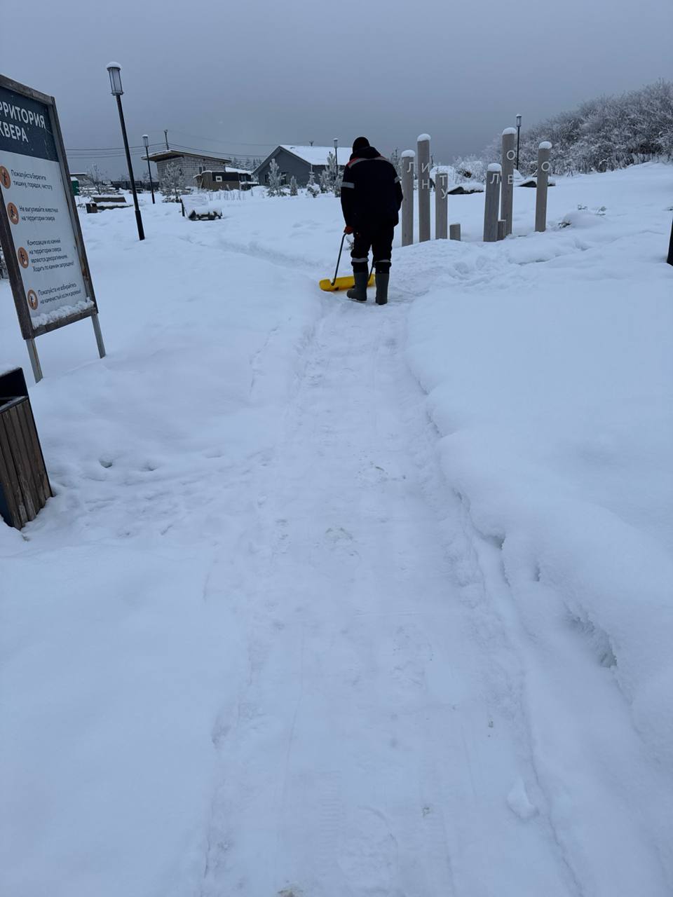 Регулярная уборка снега и клининг территории и малых архитектурных форм в зоне «Рост.Камни» и детской площадки.