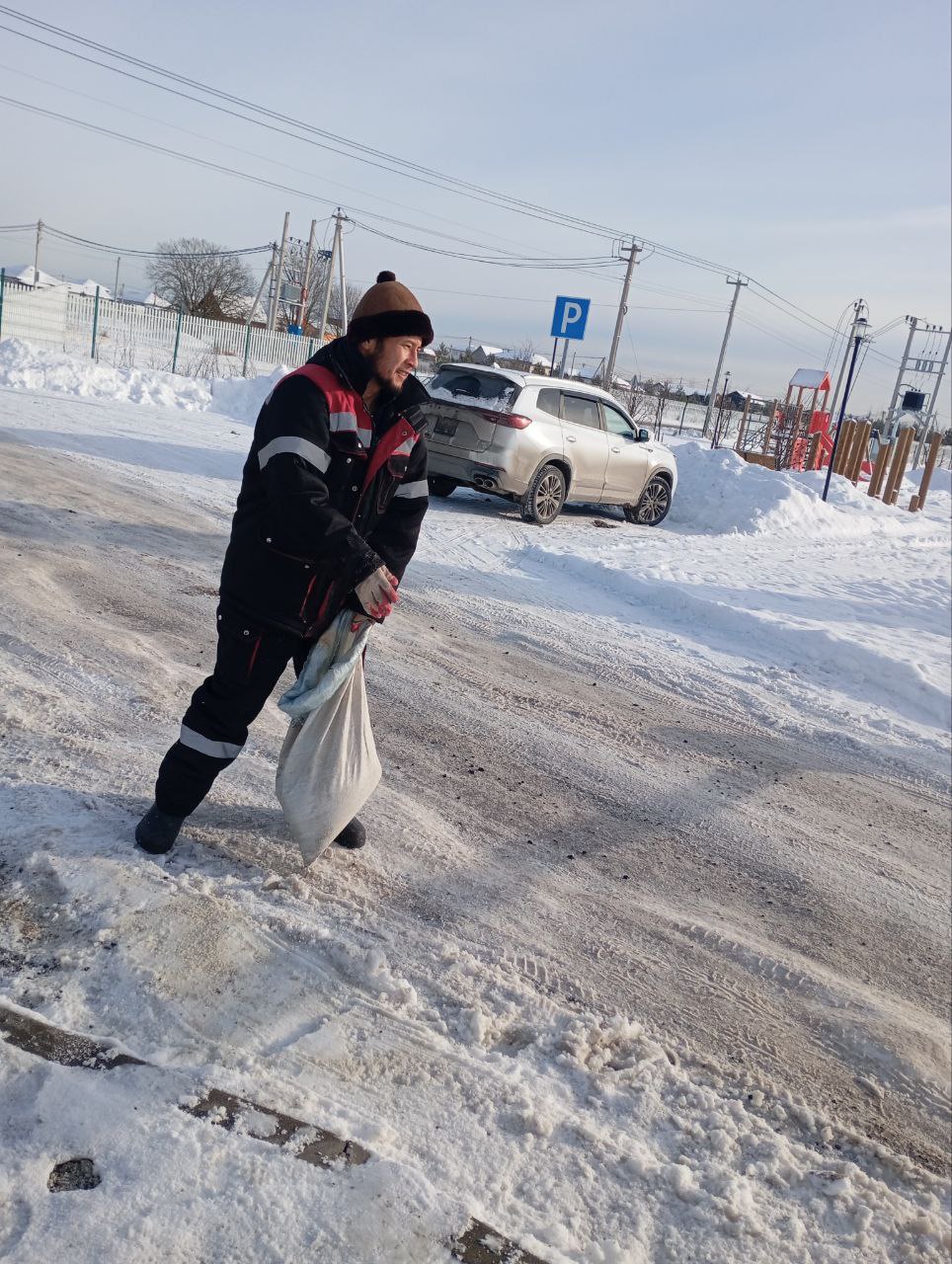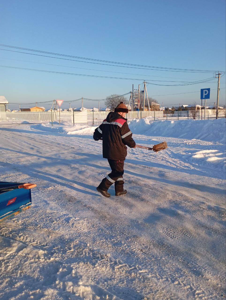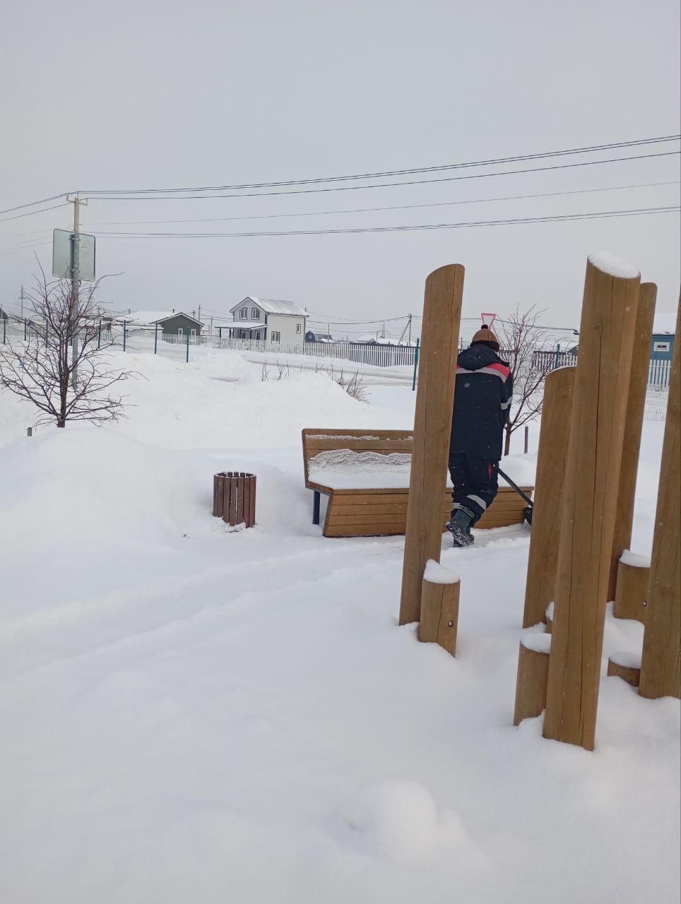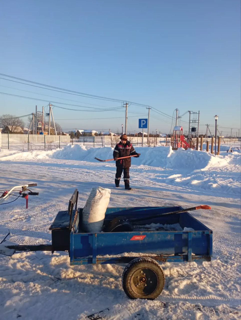 Очищена от снега территория детской площадки, парковки и зоны у контрольно-пропускного пункта.