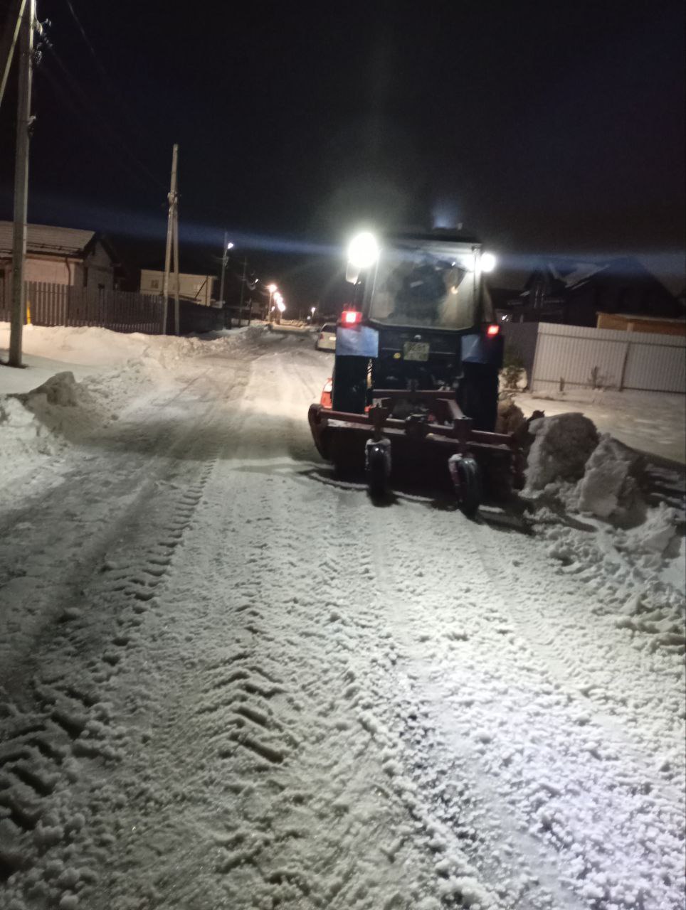 Выполнена механизированная очистка посёлка трактором от снега.