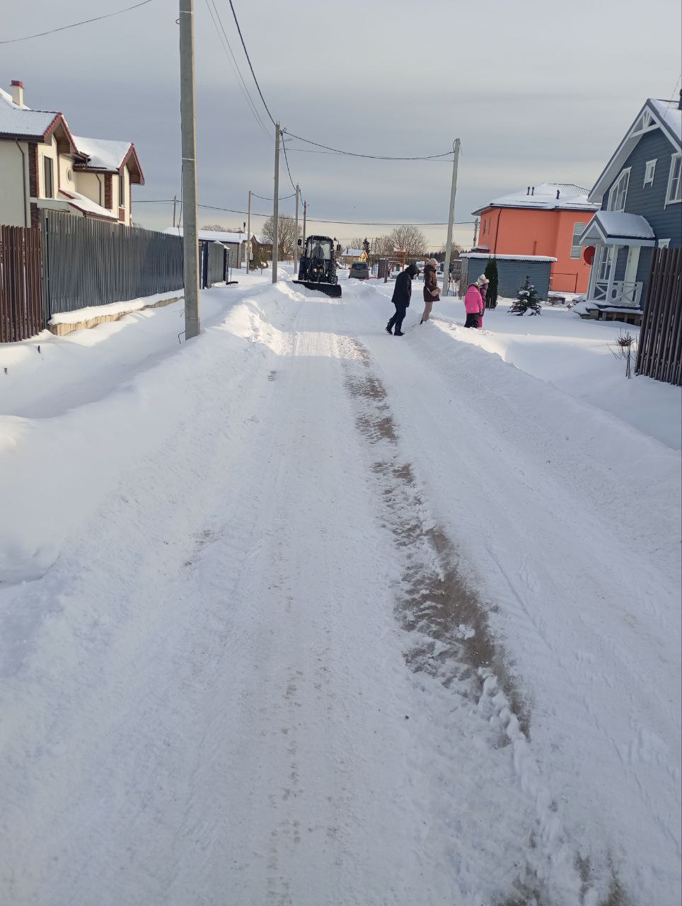 Проезды и перекрёстки обработаны отсевом и солью.