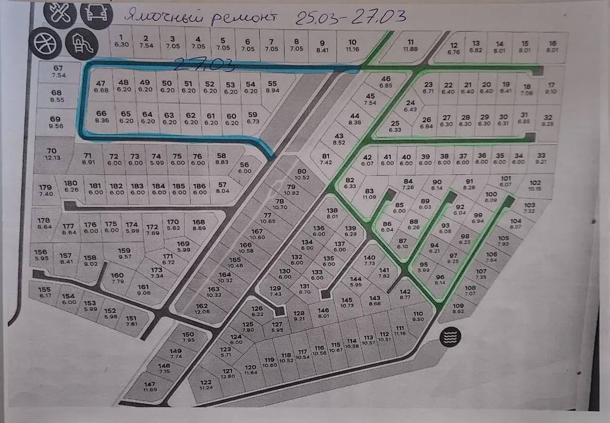 Закуплены и приняты сыпучие материалы: 33 м³ отсева и 33 м³ щебня.
